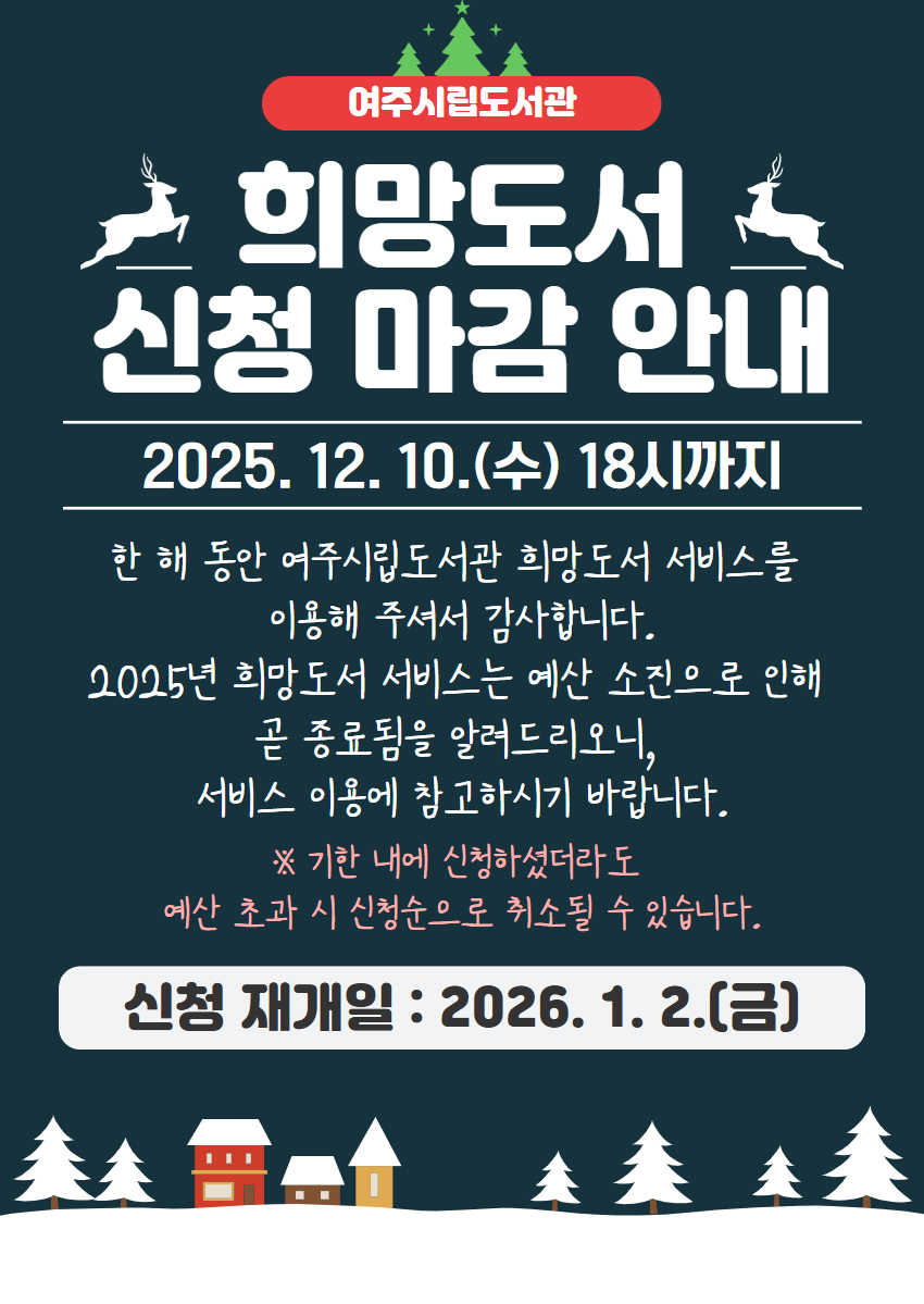 공통 2025년 여주시립도서관 희망도서 서비스 마감 안내