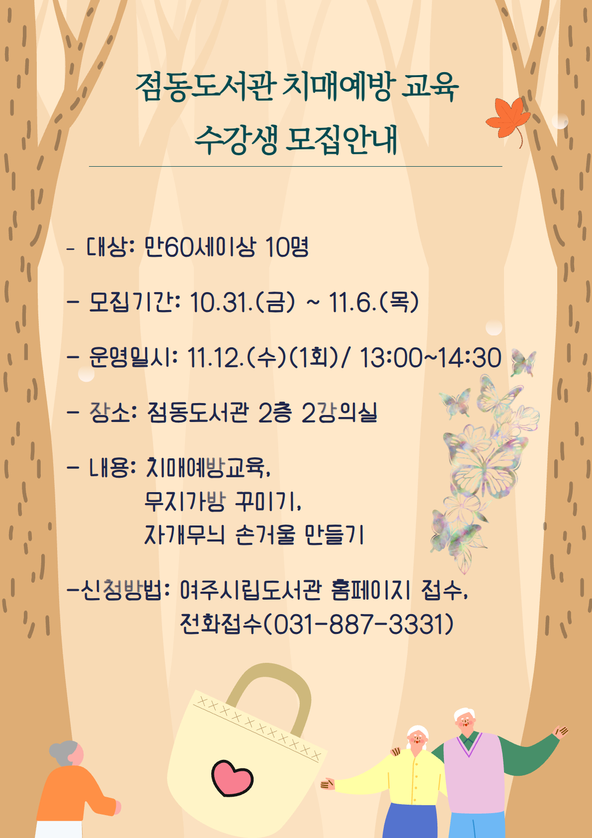 <점동도서관 치매예방 교육 수강생 모집안내>